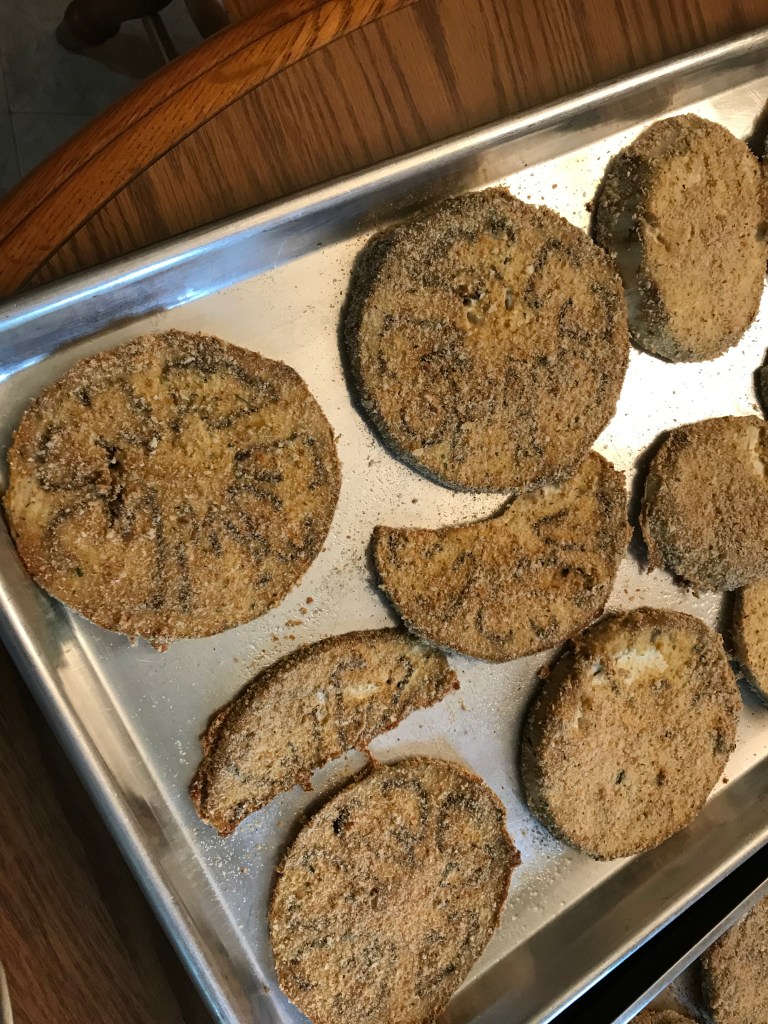 One of my husband’s favorite summer dishes is eggplant Parmesan. Over the years we tweaked the recipe in different ways, searching for a happy medium between the version I grew up with, the one he grew up with and the ultimate that we both enjoyed.